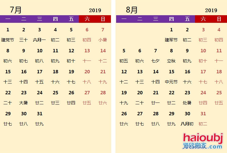 7月份,8月份沒(méi)有放假節(jié)日,但是有重大的全國(guó)節(jié)日,建黨節(jié)和建軍節(jié),中元節(jié)三節(jié)。前面的兩個(gè)節(jié)日是非常重要,最值得紀(jì)念的節(jié)日。